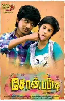 Soan Papdi (Tamil: சோன்பப்டி) is a 2015 Tamil language comedy crime thriller film directed by Sivani.[1] The film features Sri, child actor Sahil (making his debut), Priya, and Niranjana in lead roles, while Manobala and Pattimandram Raja play supporting roles. The music was composed by Dhanraj Manickam. The film released on 29 May 2015.