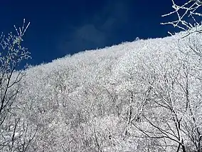 Sobaeksan National Park (Korean: 소백산국립공원, 小白山國立公園) is located in the provinces of Chungcheongbuk-do and Gyeongsangbuk-do, South Korea. It was designated as the 18th national park in 1987.[2] It is named after the 1,439-metre (4,721 ft) mountain Sobaeksan. The park is home to 1,067 plant species and 2,639 animal species.[2] Reintroduction program of the critically endangered Korean Foxes with captive animals from the Seoul Zoo has been run to reestablish the local population of 50 by 2020.[3]