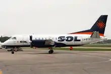 SOL S.A. Líneas Aéreas[4] was an Argentine airline founded in 2005,[5] and operating since August 2006 pursuant to an agreement between Transatlántica Group and the government of Santa Fe Province, who sought to improve air connections between the cities of Córdoba and Santa Fe. It had its headquarters in Rosario.[6]