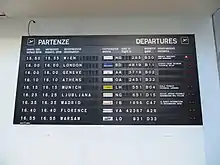 Solari di Udine SpA is an Italian company that designs and manufactures public information displays, historically split-flap displays. The company was founded in 1725 in Udine, a small town in northern Italy. Initially, the company specialized in clocks for towers. It began working with designer Gino Valle after World War II, and developed signs with four flaps, each with ten digits, to display the time. The company eventually designed displays with 40 flaps, with the help of Belgian inventor John Myer. The new displays could include numbers and letters, allowing for a much wider use.[1]