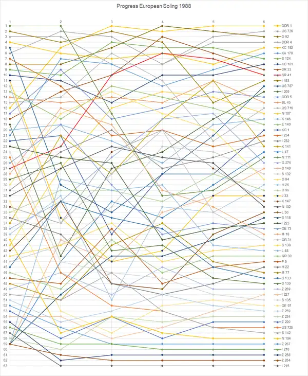 | 8 | Ralf Völker | Laurent Scheel Steffen Voigt | DDR 3 | 16 | 22.0 | 1 | 0.0 | 3 | 5.7 | 19 | 25.0 | 14 | 20.0 | 10 | 16.0 | 142.7 | 88.7 | |||