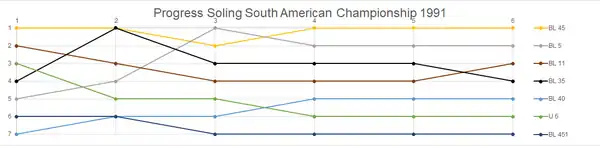 This article stated the results of the South American Soling Championships from 1971 till 1979. Not all crew names are documented in the major sources: United States Soling Association (USSA) bulletin "Leading Edge" and International Soling Association (ISA) magazine "Soling Sailing".