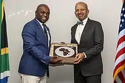 In September 2015, Msimanga was announced as the DA's mayoral candidate for the City of Tshwane in the 2016 municipal elections. He defeated Brandon Topham and Bronwyn Engelbrecht for the nomination.[17] The DA emerged as the largest party after the election, but without a majority. By forming a coalition with several smaller parties, and with the support of the Economic Freedom Fighters, Msimanga was elected unopposed as the Executive Mayor of Tshwane. He was the first DA member to hold the post.[18][19]