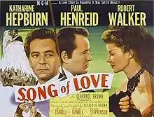 Song of Love is a 1947 American biopic film about the relationship between renowned 19th-century musicians Clara Wieck Schumann (Katharine Hepburn) and Robert Schumann (Paul Henreid). The film, which also stars Robert Walker and Leo G. Carroll, was directed by Clarence Brown and released by Metro-Goldwyn-Mayer. Ivan Tors, Irma von Cube, Allen Vincent, and Robert Ardrey co-authored the screenplay, which was based on a play by Bernard Schubert and Mario Silva.