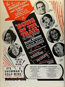 Song of the Trail is a 1936 American Western film directed by Russell Hopton and starring Kermit Maynard, Evelyn Brent and Andrea Leeds.[1]