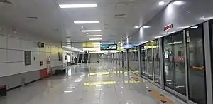 Songdo Moonlight Festival Park station is a Line 1 subway station of the Incheon Subway in Yeonsu-gu, Incheon, South Korea. It opened on December 12, 2020 and became the terminal station at the same time.[1][2] It is designed so that the section after the station can pass at a speed of 65 km/h when the route is extended later.
