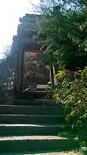 The Songir fort atop the village is in the form of narrow strip 30m wide. An easy climb of 20 mins takes to the top of the fort. Songir has 3 to 4 small adjacent forts. There is a deep water well on the fort.[1] Only the door frame of the entrance of the fort is remaining rest all structures are in ruined state.