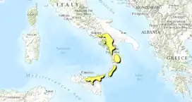 A 2017 assessment found that 6,008 km², or 46%, of the ecoregion is in protected areas.[1] Protected areas include Aspromonte National Park, Sila National Park, and Pollino National Park, Appennino Lucano - Val d'Agri - Lagonegrese National Park, and Monte Piacentini Regional Park, Nebrodi Park, and Etna Park.
