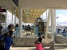 The station was built at the end of what started out as Chicago South Shore and South Bend Railroad's freight spur.[13] The physical location of the station was chosen due to the existence of the freight spur, but this alignment was originally intended to be only temporary.[14] The opening of a new station at the airport came on November 20, 1992.[6] Approximately 200 people attended the opening ceremony.[12] The new station cost $1.8 million, with NICTD paying approximately $1 million of the cost, and the rest being paid by the airport authority.[6] The station was originally an open platform, but, as was planned from its initial construction,[15] was later covered soon after with the construction of a new passenger terminal addition connected to the station. From its opening, the station has been accessible to those with disabilities.[16]