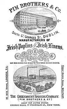 Pim Brothers & Co. drapery store and warehouse opened on a building at the lower end of the street around 1843. It was refurbished ten years later by Sandham Symes. The premises closed in 1970 and is now a government office.[9]