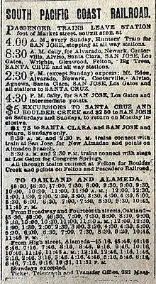 - ↑ "The Narrow Gauge Road". San Jose Daily Herald. September 8, 1879. Retrieved 3 August 2023.