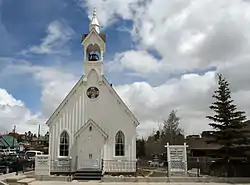 The South Park Community Church is an historic Carpenter Gothic-style church building located at 600 Hathaway Street in Fairplay, Park County, Colorado. Built in 1874, the church was founded by Presbyterian missionary Sheldon Jackson. Its board and batten siding and lancet windows are typical of Carpenter Gothic churches. Originally the Sheldon Jackson Memorial Chapel, the structure is now the South Park Community (Presbyterian) Church.[2][3][4]