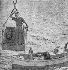 People and supplies being hauled from a launch, 1946