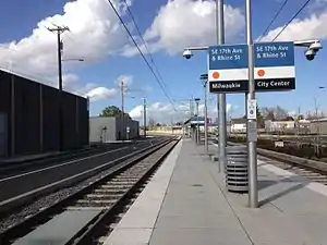 Southeast 17th Avenue and Rhine Street is a MAX Orange Line station located at 3424 Southeast 17th Avenue in Portland, Oregon's Brooklyn neighborhood, in the United States.[1] Along These Lines is installed at the station.