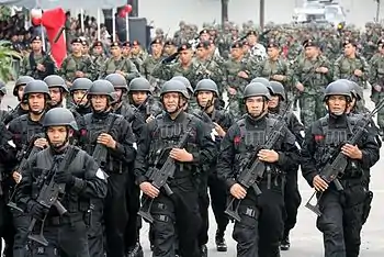 The Special Reaction Unit is a part of the Presidential Security Group, which serves as its main counter-terrorist unit among the other nine organic units.[1] It's not to be confused with the Special Reaction Unit of the Philippine National Police's Maritime Group, since they share the same name.[2]