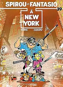 Spirou à New York, written by Tome and drawn by Janry, is the thirty-ninth album of the Spirou et Fantasio series, and the seventh of the authors. The story was serialised in Spirou magazine before being released as a hardcover album in 1987.