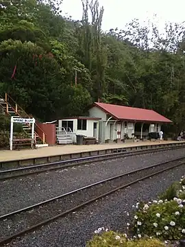 The railway station closed in August 1992. The station and its gardens are heritage listed,[3] and are maintained by a trust consisting of the regional councils of Toowoomba and Lockyer Valley along with Queensland Rail, who also operate a cafe at the site. Due to the floods at Spring Bluff and nearby Murphys Creek in early 2011, the station was closed for repairs for several months.