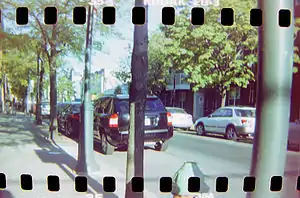 Sprocket hole photography is a style of photography that exposes the full width of 35 mm film, creating a photograph punctuated by the "sprocket holes" (perforations) along the edges of the film. Usually, this style involves the use of a modified medium format camera, since a 35 mm camera ordinarily will not expose the edges of the film.