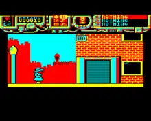 The game takes the form of an arcade adventure with the player moving through a series of locations and rooms, collecting and using items to progress. The player must avoid CCTV cameras and "Q"'s electronic devices that will drain Spycat's energy. The actions in the game (e.g. picking up and using items, opening doors) are controlled using an icon panel at the top of the screen.