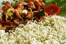 Nasi goreng (Sinhala: නාසි ගොරේන්) and mee goreng are popular street food dishes in the country, a result of cultural influences from Indonesia and the country's local Malay community.[17][18][19]