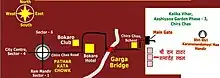 To reach the temple, the devotees should travel towards Bokaro Hotel from Patharkata Chowk. Turn left towards Chinmaya School and turn right by Asha Lata Kendra. Devotees should continue on this road, crossing the Chira Chas bridge. One should then travel straight to Chira Chas school and then turn left. After traveling a distance of 30 feet, one should then turn right (by the board of Kalika Vihar Phase -3), and then enter the Aashiyana Garden/Kalika Vihar Phase - 3 campus where the temple is located.