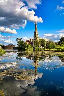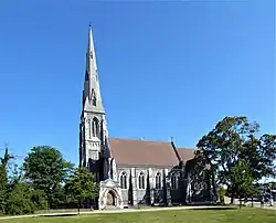 St. Alban's Church, locally often referred to simply as the English Church, is an Anglican church in Copenhagen, Denmark. It was built from 1885 to 1887 for the benefit of the growing English congregation in the city. Designed by Arthur Blomfield as a traditional English parish church in the Gothic Revival style, it is in a peaceful park setting at the end of Amaliegade in the northern part of the city centre, next to the citadel Kastellet and the Gefion Fountain and Langelinie.