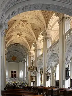 The church is furnished with stucco by Johannes Kuhn from Strassburg[4] and life-size sculptures of the apostles and of saints of the Society of Jesus.