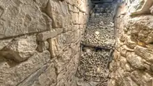 No evidence exists on the provenance of the bones, or how they ended up in these secret passages. Speculation suggests that these were the bones of unfortunate victims of the 1614 Turkish raid,[32] while others suggest the void was used as an ossuary.[34] Between 1978 and 1980 studies on the bones indicated that the skeletons had probably been exhumed and moved there from a cemetery.[32] Moreover, it was found that the skeletal remains belonged to individuals who had died within a short period of time.[34]