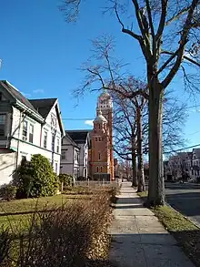 Property on Hillhouse Avenue was secured in July 1868. Architect James Murphy of Providence, Rhode Island was commissioned to draft the plans. The construction of a Catholic church on Hillhouse Avenue was strongly opposed by the Protestant elite who lived in the area.[4] The church was dedicated in 1874.