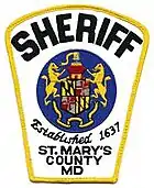 The St. Mary's County Sheriff's Office is the primary law enforcement agency servicing St. Mary's County, Maryland. It has a direct jurisdiction of 764 square miles (1,980 km2) servicing (as of 2010) a population of 105,151 people.[1]