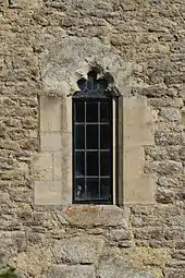 The chapel has the nave and chancel in one, the north doorway, with a chamfered arch, is original. Alterations were made to the west doorway and the roof in the 15th century, in a Perpendicular Gothic style, with a crenellated wall plate and blank shields. The unusual tracery in the large two-light windows, originally dating from the 14th century, may have been added in the 17th century. One of the west windows is 17th century and repairs to the hospital are recorded in 1600, 1635 and 1649, the last for damage to the main hospital range, north of the chapel, during the English Civil War. There are remains of two painted crosses on the west wall. The simple screen with openings divided by two columns and two pendants is dated 1651 and was given by Oriel College and the plain wooden fittings are designed by Ninian Comper.[3] It is a Grade I listed building.[4]