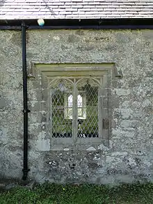 Internally, the chancel arch dates from the 13th century.[10] It is 12 feet (3.7 m) wide and 19 feet (5.8 m) from the floor to the top of the arch; the supporting pillars are 10 feet (3.0 m) tall.[11] There are windows from the early 16th century in the chancel, with the large east window in Perpendicular style (in contrast to the rest of the church, which is mainly in Decorated style).[10] It has five ogee-headed lights separated by vertical tracery, and measures 10 feet 10 inches (3.3 m) at its widest point by 14 feet 2 inches (4.3 m) at its tallest.[10][11] Unlike most of the other windows in the church, it contains coloured glass.[1] A smaller window in the north wall also dates from this time, and has a square frame containing two lights; a matching window was added in the 19th century in the opposite wall. The other windows in the church are from the 19th century in various designs.[10] One window, in the north wall of the nave, has had stained glass added as a memorial to two local residents who died in the 1990s.[1]