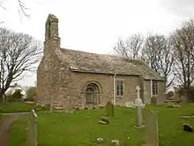 In the churchyard, to the south of the church is a sandstone cross base and part of its shaft, probably dating from the medieval era.[6] The churchyard also contains the war graves of an airman of World War I, and an airman and a Wren of World War II.[7]