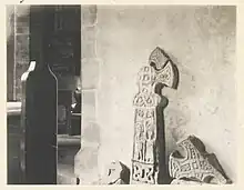 The church is built of Magnesian Limestone and sandstone, with a Welsh slate roof. There is a west tower with two stages, supported by angle buttresses. It has a staircase turret to the south-west, it has lancet windows and Perpendicular windows above, and the tower is topped by battlements and gargoyles. The nave has three bays, with aisles and a south porch, and there is a two-bay chancel with a north chapel. There are a variety of windows, some original and containing fragments of 15th- and 16th-century glass, and others dating from the 1860 restoration. The priest's door to the chancel has a Tudor arch. Inside, there are round piers supporting pointed arches to the aisles, and the tower and chancel arches are also pointed. The font is Norman, and there is a 16th-century pierced screen in the north chapel. There are parts of three 10th-century crosses, and there is an early-19th century memorial depicting the Adoration of the Magi.[2]
