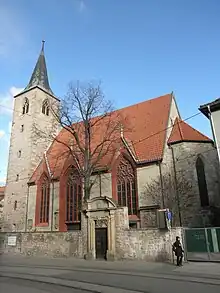 St Lawrence's Church was founded in 1138 by the Mainz viceroy Giselbert.[1] It was first built around 1140, consecrated by the then provost of Erfurt and later archbishop of Mainz, Adelbert II, and had been a parish church since its foundation. The original building was Romanesque, of which almost nothing remains.