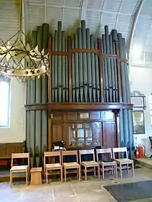 In 1920 the present organ was constructed and sited in the organ chamber. During the Second World War the church was damaged by enemy action which required much of the roof and some walls to be repaired.[2]