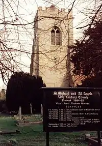 The nave and aisles date from the late 12th century, and the chancel from the early 14th century. The north chapel was endowed in 1334. The church was badly damaged in 1645–46 during the Civil War, and was repaired and reconstructed between 1657 and 1662. In 1864 G. E. Street carried out a restoration, and added the south porch and vestry.[3] In 1998 a new bell-ringing floor was inserted in the tower, which allowed the creation of a kitchen and toilets below it.[1]