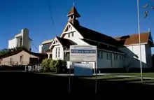 The development of a peanut storage and processing plant by the Peanut Board and Peanut Growers' Cooperative Association on adjacent land began in 1927. The success of the Kingaroy-based peanut industry has resulted in a large industrial site becoming the backdrop to the church. This juxtaposition highlights the aesthetically pleasing nature of St Michael and All Angels Anglican Church.[1]