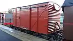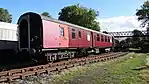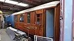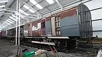 6 wheel compartment brake van which is currently undergoing restoration. Largely completed internally, with substantial external panelling work completed, moved into new restoration building where restoration has resumed[7]
