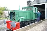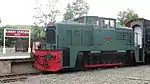 0-6-0DE "Stanton No50". Ex stanton steelworks locomotive, the only 'Janus' type locomotive at the works, despite a successful career. Sold into further industrial use. The loco was eventually donated to an abortive preservation scheme. The loco then passed from one railway to another for a number of years, eventually ending up at the Nene Valley Railway where she received a full overhaul to operational condition and fitting of both air and vacuum braking systems. The loco was sold privately and is now based at Stainmore Railway Company and is used on Diesel passenger services (the first out of Kirkby Stephen East since the line was closed to passengers in 1965).[6]
