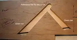 The jig is used to make finish stringers, in interior staircase fabrication. The stringer is also referred to as a skirtboard. It can be used in a closed staircase or an open staircase where one side of the staircase is exposed, and the other is housed into the skirtboard.[1]