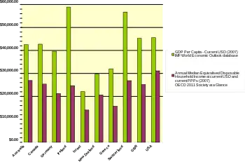 Median Equivalised Household Income and GDP per Capita levels in selected developed nations