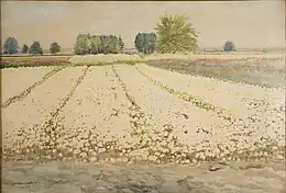 Soon he returned to landscape painting. Works of this final period was uneven. The most outstanding works of this time include watercolor paintings from a trip to Italy in 1922[29] and some landscapes of Wola Rafałowska village, such as a few from the year 1924: "Ule" (en. The Beehives – the Silesian Museum in Katowice), "Gryka" (en. The Field of Buckwheat) and "Łubin" (en. The Field of Yellow Lupin – The National Museum, Warsaw).[30][31]