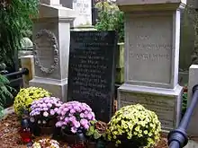 In the last year of life, suffering from a heart disease, he little worked. He died 31 May 1926 in Warsaw[14] and was buried at the Powązki Cemetery in Warsaw, in the tomb of his mother's family (section 11-1-7/8, cf. the information boards behind the entrance of the "Saint Honorata" gate in the category: "Plastycy", i. e. "Artists").