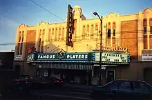 The first film shown at the Stanley was One Romantic Night, starring Lillian Gish.[1][6] Admission was originally between 10 and 40 cents.[3][5] The vertical Stanley sign was added in 1940 and the stylized Stanley script came in 1957.[3][5] The cinema, which had been part of the Granville Theatre Company,[4] was bought by Famous Players in 1941 for $268,000.[3][5]