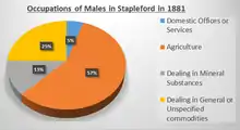 In 1831, majority of males were labourers and servants whilst the remaining were employers and professionals or into middling sorts or other occupations, this shows the social status of males in Stapleford during those times.[4]
