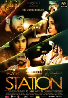 Station is a 2014 Hindi thriller film written and directed by Saad Khan and was produced by Sumit Ghosh Media, an independent company that promote talents from Bangalore.[2][3] Sameer Kevin Roy, Vibhinta Verma, and Siddhanth Sundar star as the main protagonists of the film. Production began in November 2011, and was wrapped up in July 2012. The film went to post-production in March 2013, and was released on 28 March 2014 via PVR Cinemas and its arm PVR DIRECTOR'S RARE which works as a springboard to support the theatrical release of the critically acclaimed cinema and niche content from across the world.[4] Official theatrical trailer was launched on 20 February 2014 at PVR Forum Mall,[5] Bangalore in presence of Kannada film director Jacob Verghese, prominent Fashion Guru Prasad Bidapa along with Miss Earth Nicole Faria, and the cast and crew of the film.[6][7][8] The film follows three psychotic assassins as they wait to finish a job at a waiting room on a deserted railway station.[9]