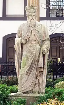 The statue stands in the garden in the centre of Trinity Church Square in Southwark.[2] It stands 2.6 metres (8.5 ft) high and depicts a broad-shouldered, bearded man wearing robes and a crown.[3] It is thought to depict the 9th-century Anglo-Saxon king Alfred the Great.[4] The rear of the statue is quite plain, and it may have been intended for display in a niche.[1]