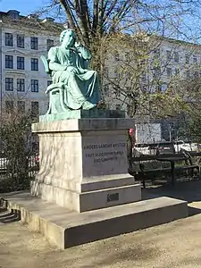The statue of Anders Sandøe Ørsted is located in Ørstedsparken in Copenhagen, Denmark. Ørsted was Denmark's leading jurist of the mid-19th century. He served as Prime Minister of Denmark in 1853–54.