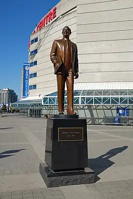 A 12-foot bronze sculpture of Edward S. Rogers Jr. is installed outside Toronto's Rogers Centre, in Ontario, Canada. The statue was installed in 2013.[1]